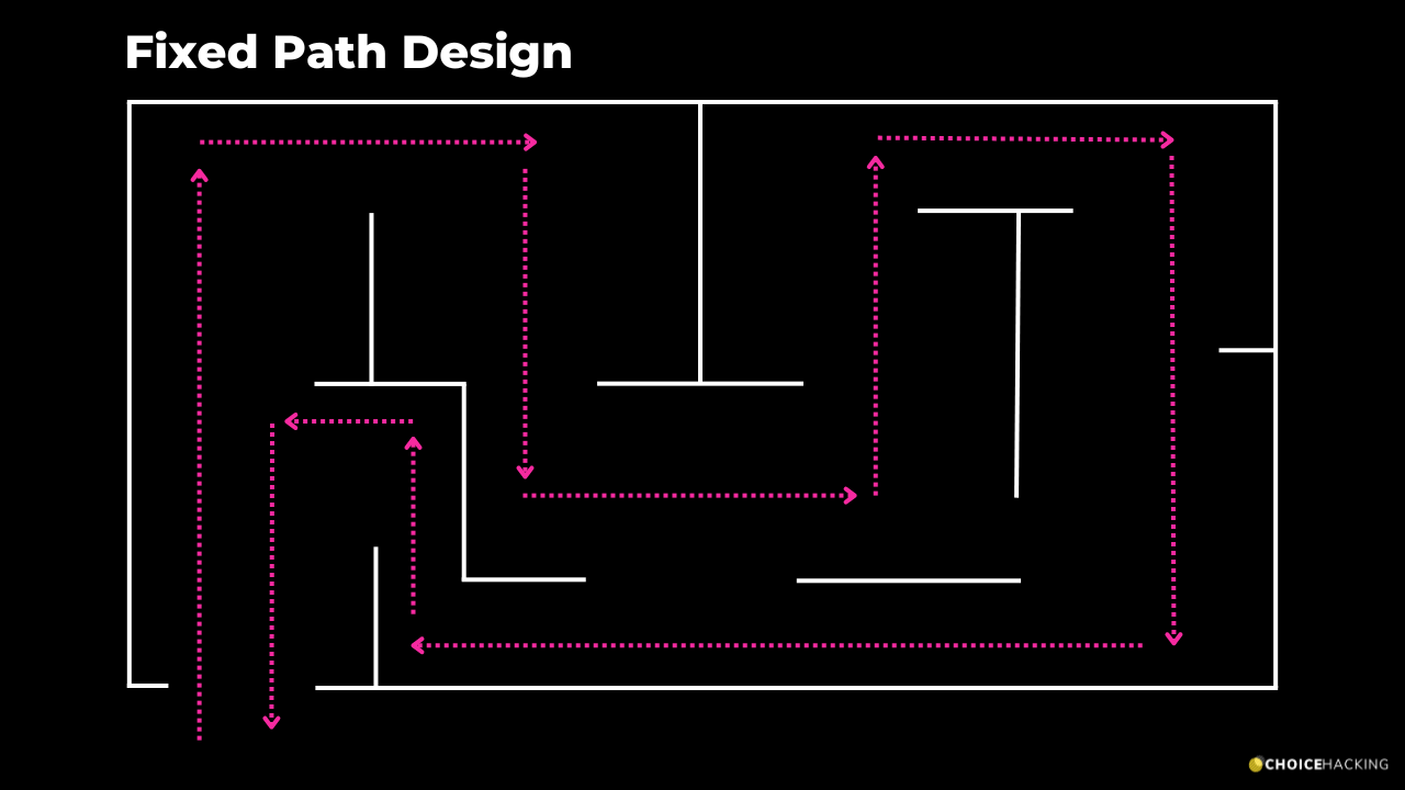 IKEA showrooms use a “fixed path” layout — there’s a designated road that you must follow, and it guides you through the store in one direction.