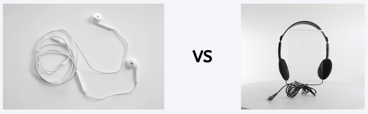 Apple’s earbuds (left) vs a popular headphone style at the time.