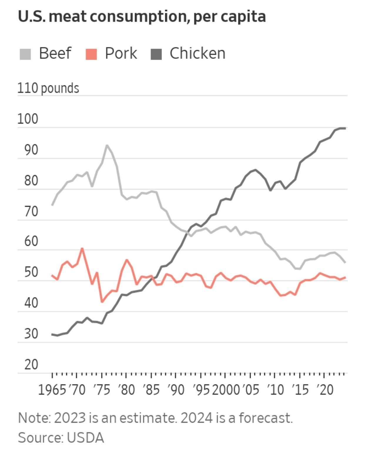 But given US meat consumption trends, there was no way the McRib could hope to match the sales of any beef or chicken product (let alone a nugget):